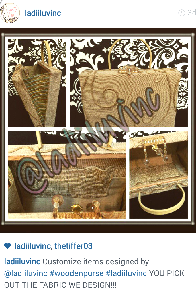 As a fellow entrepreneur, I admire her tireless work ethic, creativity, and superb customer service. Ashley Greene is the founder and CEO of Ladii Luv Inc. She is currently designing her own accessories like this wooden purse, which will soon be reproduced.